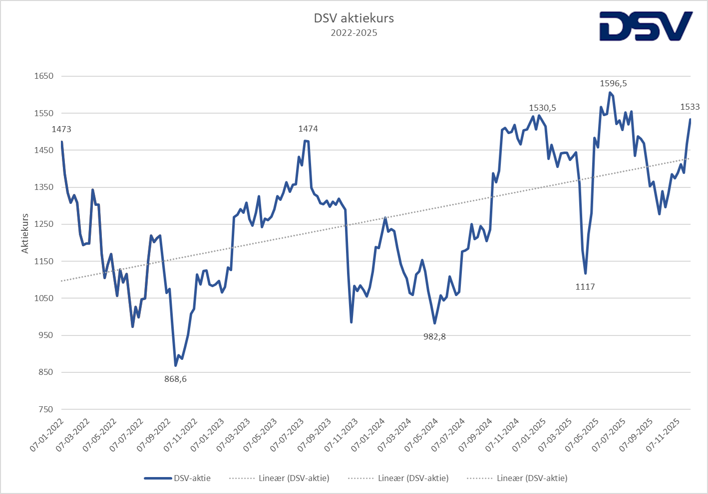 DSV kurs var fredag 1115,5(fra før 1289) og svarer til 13,46% lavere end 1 uge før. Se mere...