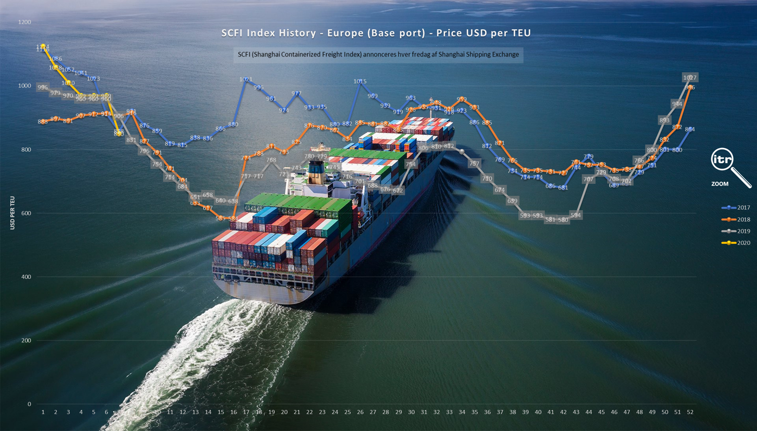 ITR anbefaler derfor kunder med kvartalspriser, at de i samarbejde med transportfirmaet for låst deres nuværende rater til SCFI. Der er flere måder at gøre det på, og som ITR kan eksemplificere for kunder, alt efter transportmønster, dvs. model afhænger af hvornår og hvor mange TEU eller CBM, der sendes i 12 mdrs. periode.