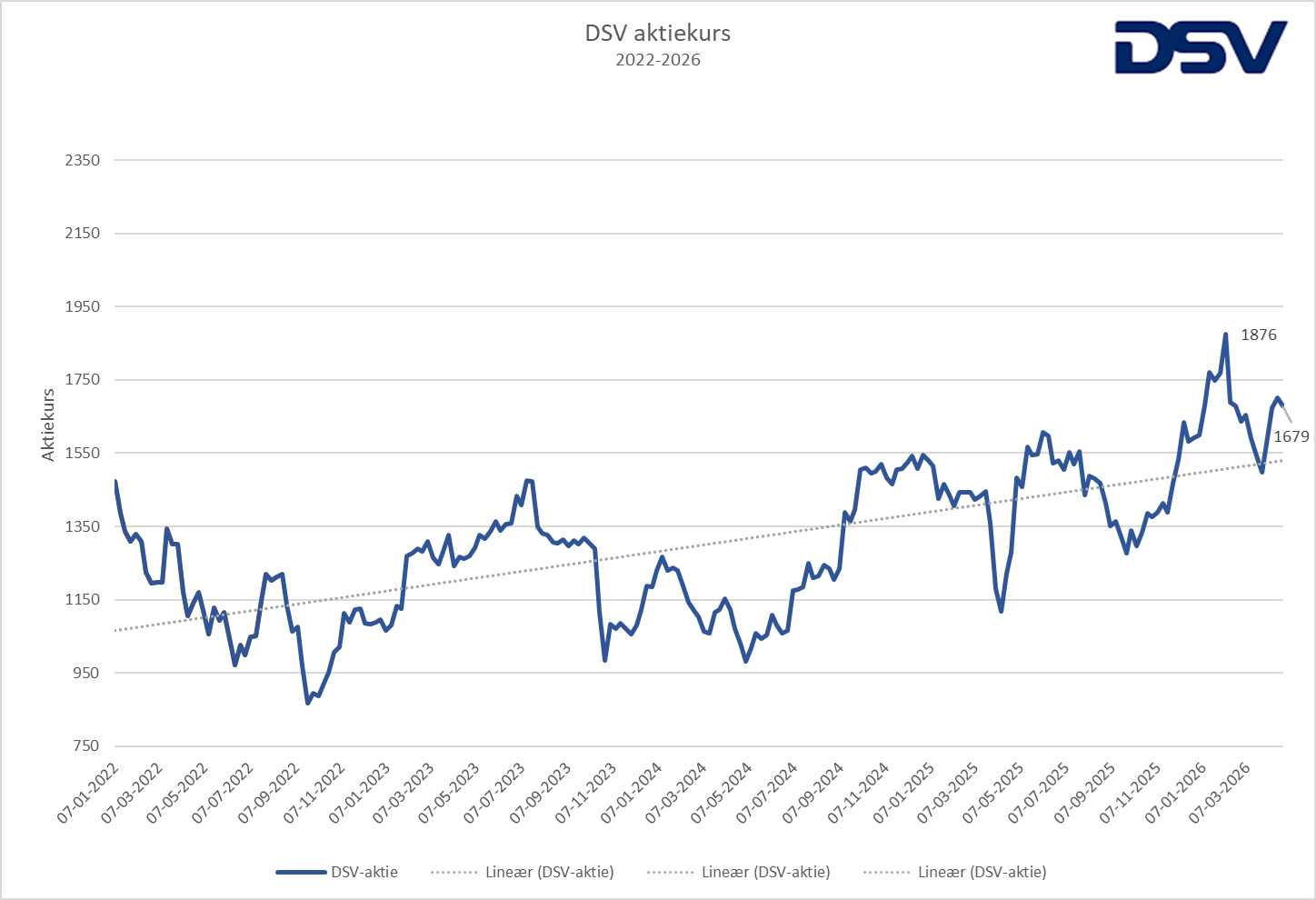 DSV kurs var fredag 1115,5(fra før 1289) og svarer til 13,46% lavere end 1 uge før. Se mere...